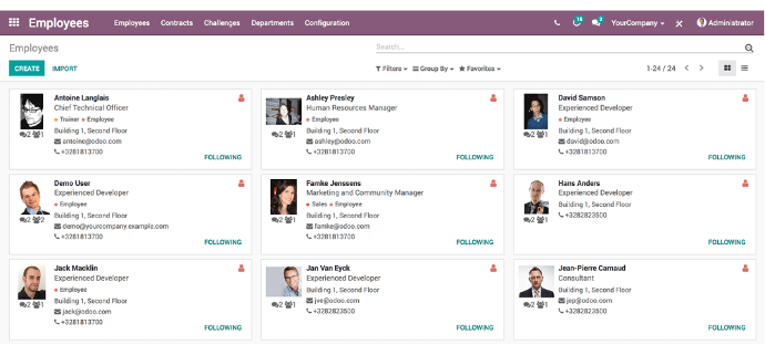 tiene un enfoque modular único para permitir a los clientes comenzar con una aplicación y agregar otros módulos más tarde. Odoo es un producto maduro ahora en la versión 16. Con oficinas importantes en Bélgica, Nueva York, Hong Kong, San Francisco, India, México, una red de socios certificados globales, establecida en más de 100 países, implementan la solución localmente. Más de 4 millones de usuarios confían en Odoo para dirigir su negocio.